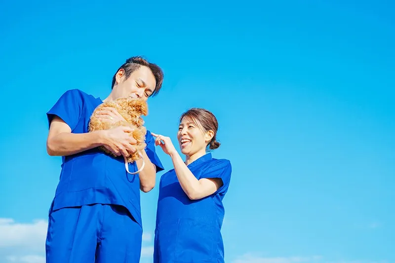 スタッフが安心して長く働ける環境づくりを大切にしています。質の高い獣医療を提供するためには、スタッフ同士の信頼と連携が欠かせません。コミュニケーションが円滑に取れる職場環境、充実した福利厚生、そして個々の成長を支える研修や実践の機会を整え、チーム全体で学び合いながら動物医療の未来を繋ぎ、質の高いサービスを通して、飼い主様とペット、スタッフを守ります。